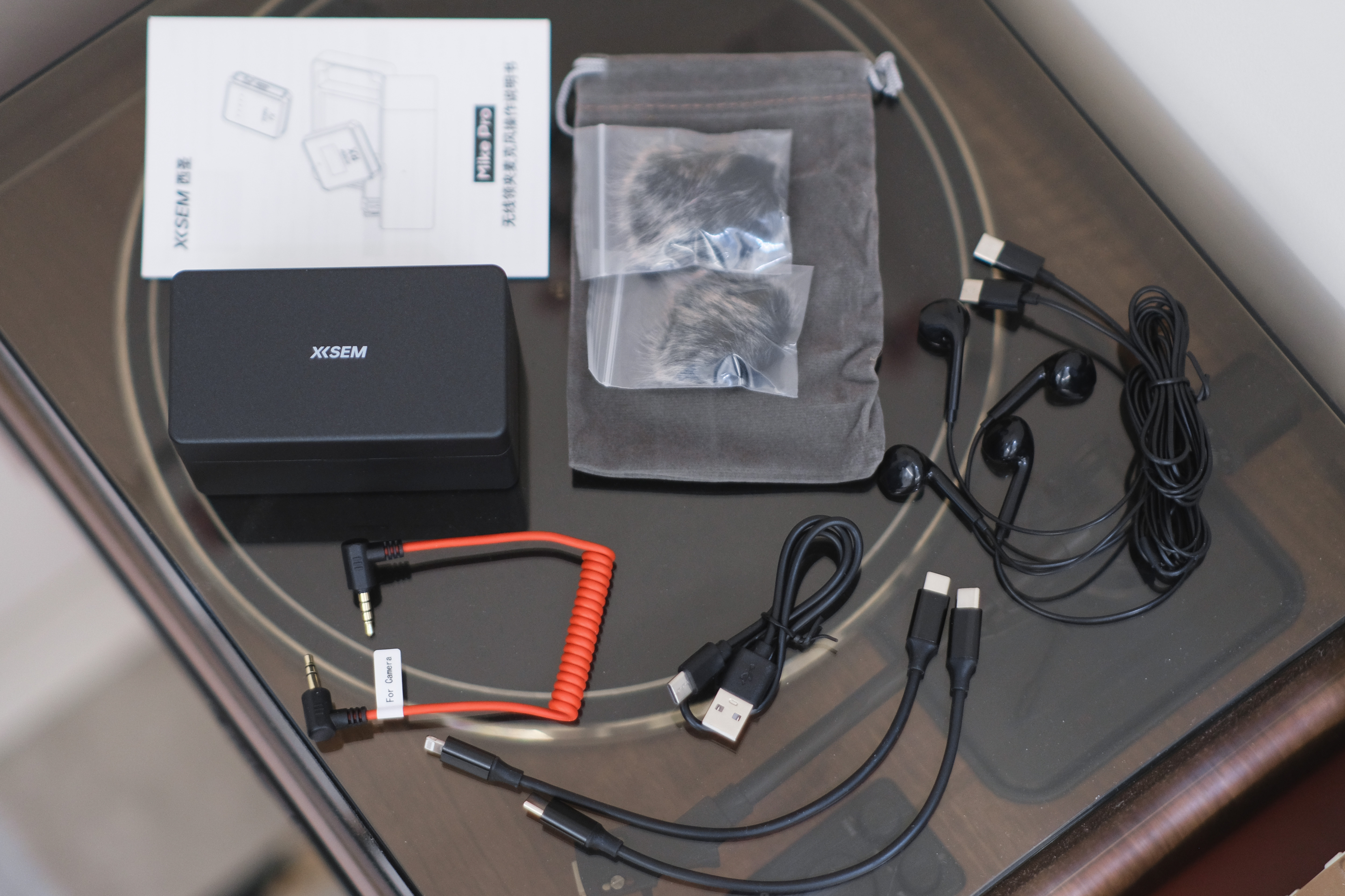 打开配件包,我直接惊呆:Type-C、Lightning、相机3.5mm转接线各一条,两副监听耳机、两个防风毛套、收纳袋,甚至连备用防风罩都有!对比我之前买过的某大牌(价格贵三倍,配件只有一根线),西圣这波简直是“配件界的卷王”。最绝的是收纳袋,质感也是相当的棒,外出拍摄直接一包拎走,再也不用担心线材缠成“毛线球”了。