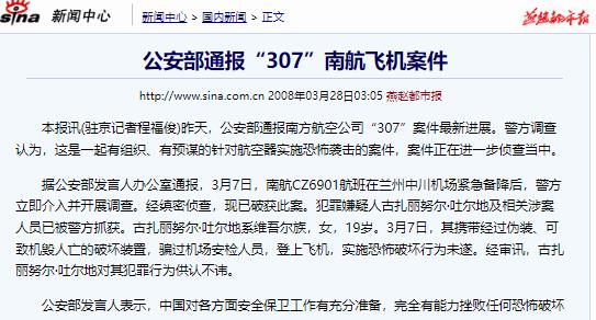 新浪网——公安部通报“307”南航飞机案件