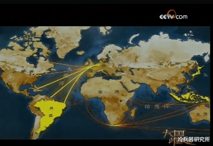 ▲央视纪录片《大国崛起》截图:荷兰人的航海路线图