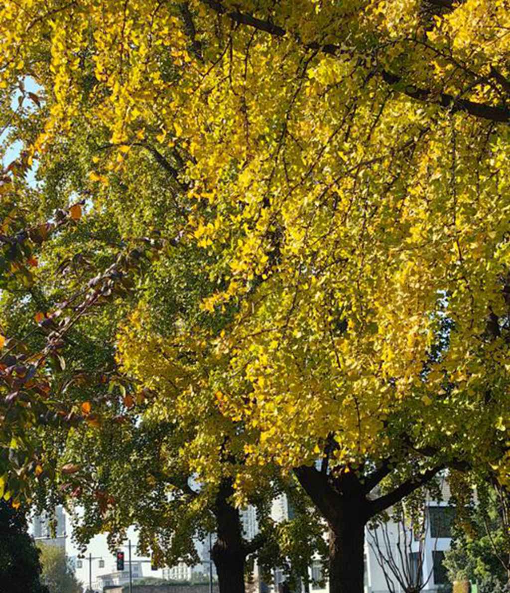 咖啡厅这些地方种银杏的话,又不一样了。我有个朋友在咖啡厅工作,他们咖啡厅门口种了银杏。可是到了春天,别的银杏都发芽了,他们这个却不发芽。他们就去调查,发现是因为装修的时候,门口种银杏的土被压得太死了,银杏根系没有办法好好呼吸,导致不能发芽。后来重新松了土,又施了点薄肥,银杏又焕发生机了。