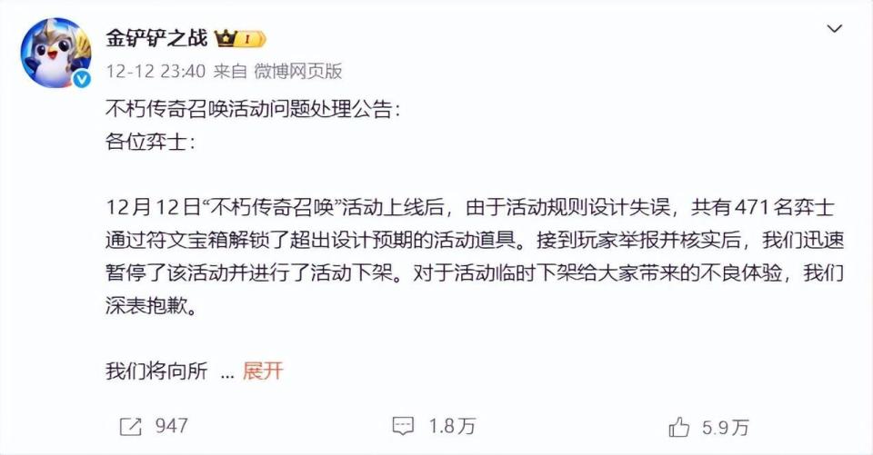 官方在公告中明确把本次事件定性为“活动规则设计失误”,跟9月时“系统失误”的性质完全不同。