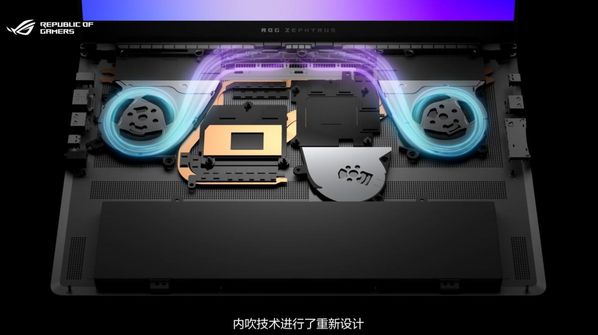 更为重要的是,在如此轻薄的机身内,ROG全新升级了升级冰川散热架构,实现了150W的整机性能释放。该散热系统采用Arc Flow绝尘风扇、0.1mm超薄鳍片以及新型纤维状散热管,配合进出风口的重新布局与液态金属导热,即使在高负载场景下,也能快速导出热量,确保处理器与显卡稳定运行,不出现降频卡顿的情况。