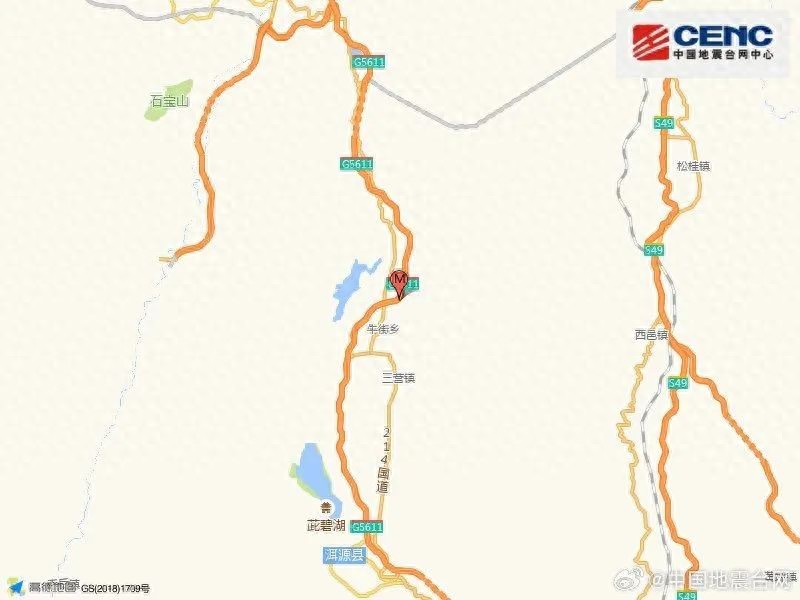 据中国地震台网测定,今日(日期)云南大理州洱源县发生4.8级地震,震源深度10公里。