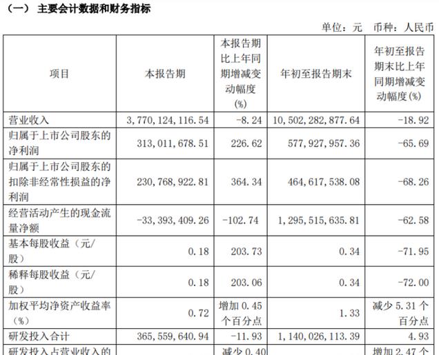 整合来看,今年前三季度,中芯国际总体营收为418.79亿元,同比增长26.5%;净利润为27.06亿元,同比减少26.4%。扣非后净利润21.99亿元,同比下降10.4%。研发投入方面,合计38.95亿元,同比增长7%。