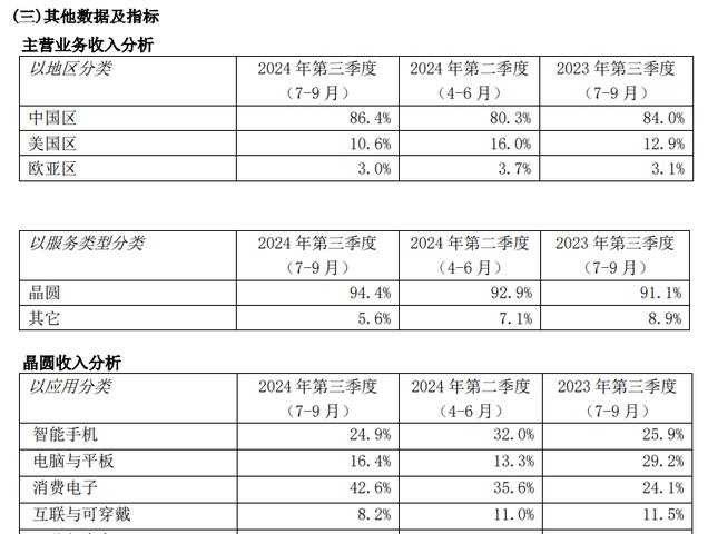 具体来看,中国区贡献最大,消费电子占比高。中国区占营收的86.4%,上一季度占比为80.3%;美国区占比10.6%,上一季度为16.0%;欧亚区占比3.0%,上一季度为3.7%。消费电子占营收的42.6%,智能手机为24.9%;电脑与平板为16.4%;互联与可穿戴8.2%;工业与汽车7.9%。