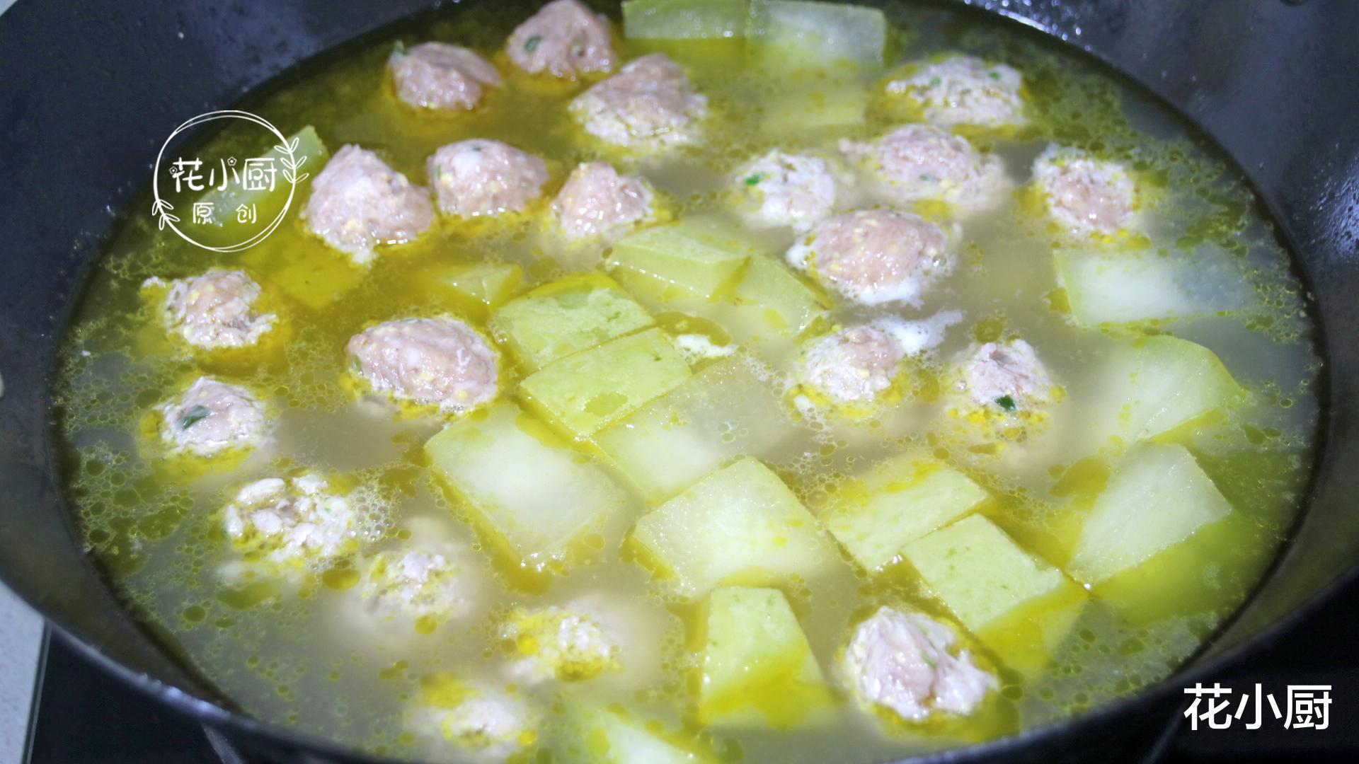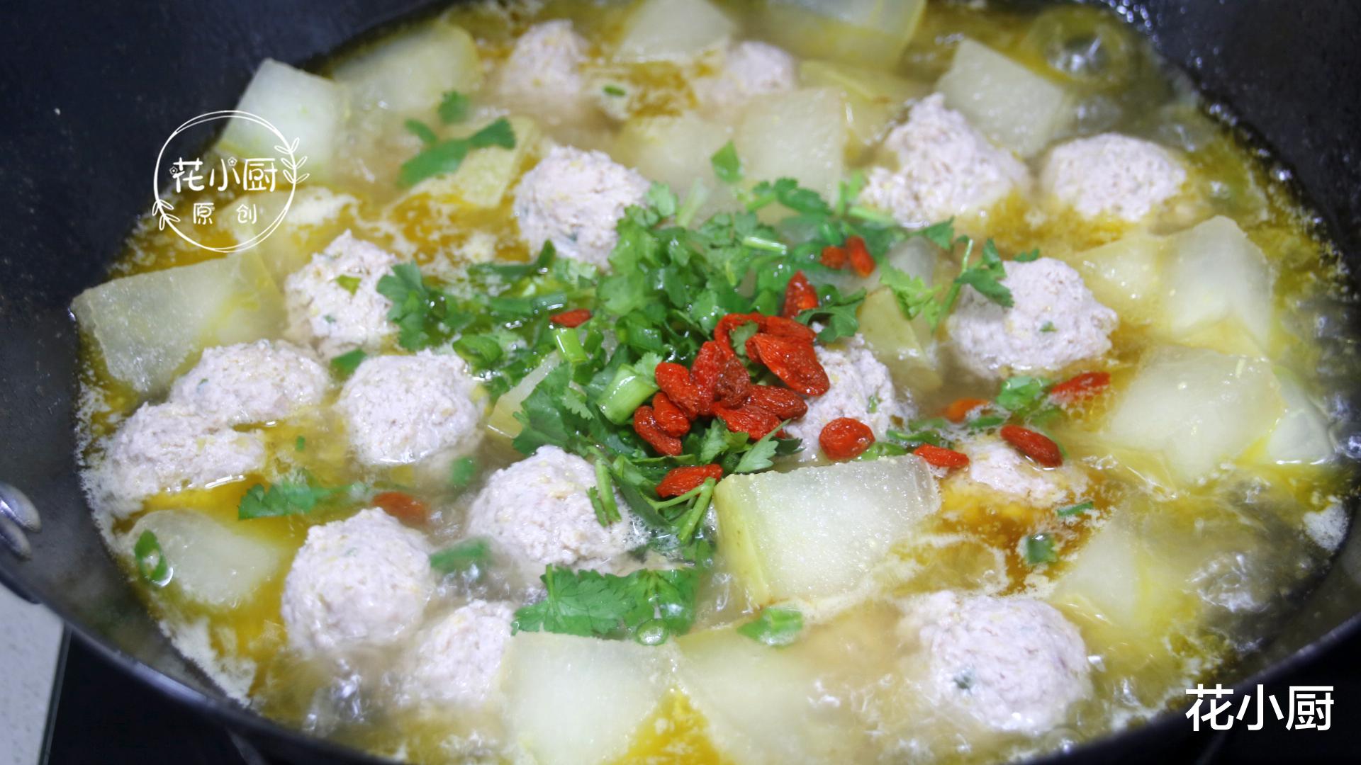 一道美味的冬瓜肉丸汤就做好了,汤汁清甜爽口,一点都不油腻,肉丸非常的Q弹筋道,天热的时候煮一锅冬瓜汤,以热制热,排寒祛湿,补水生津,有肉有菜有汤,不吃主食也能满足营养充足,喜欢的家人们不要错过!