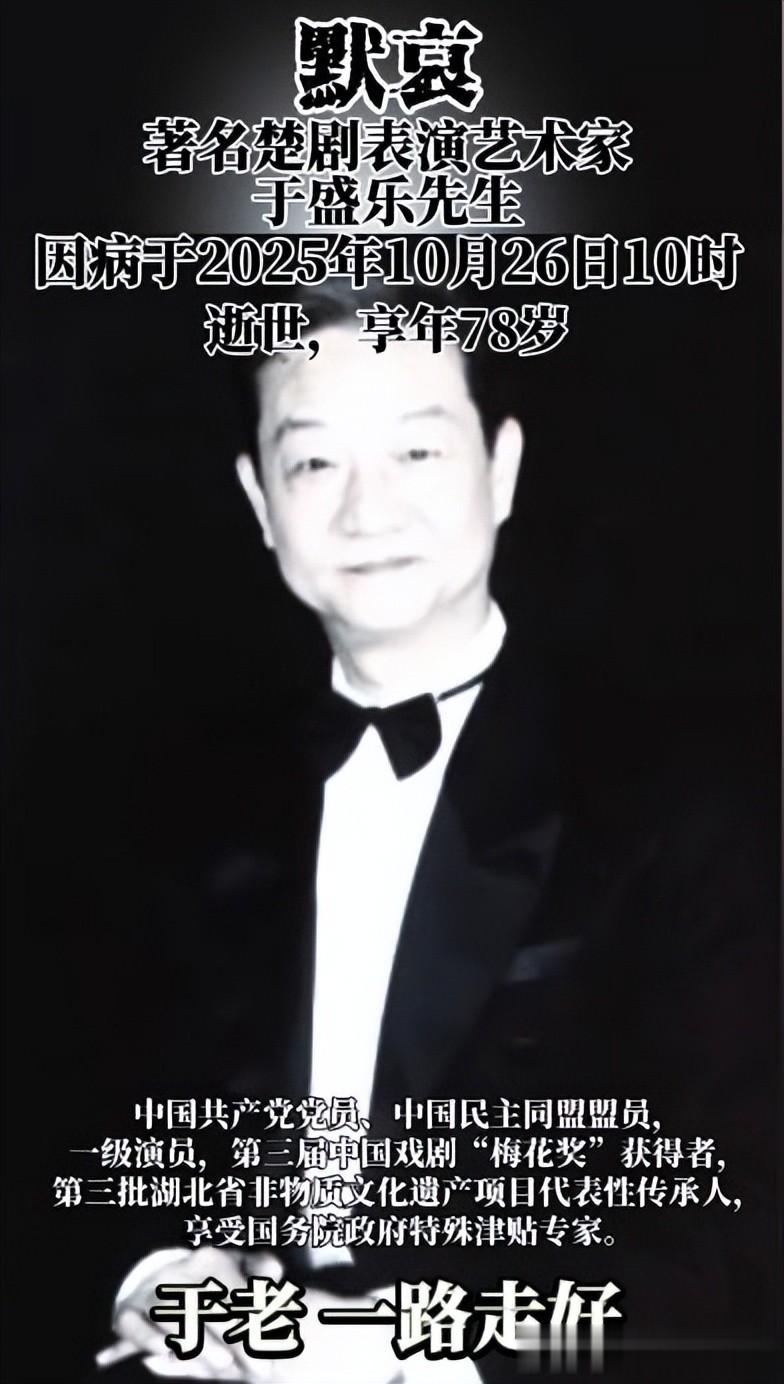 【1】红星新闻 2025-10-27 讣告:一级演员于盛乐因病医治无效去世,享年78岁
