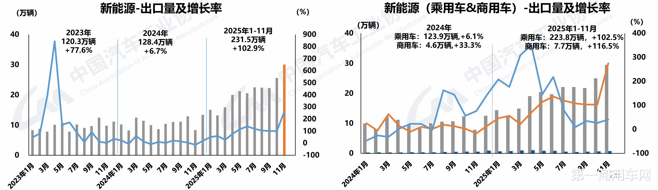 2025年1-11月,新能源商用车出口7.7万辆,同比增长1.2倍。