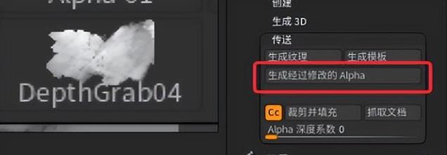 松开左键后,它就会在笔刷工具的alpha栏下生成一个根据窗口模型生成的记录了深度信息且可调整的alpha图层。如果希望长期保存的话,我们可以在alpha工具栏下找到传送---生成经过修改的Alpha进行保存就行啦。
