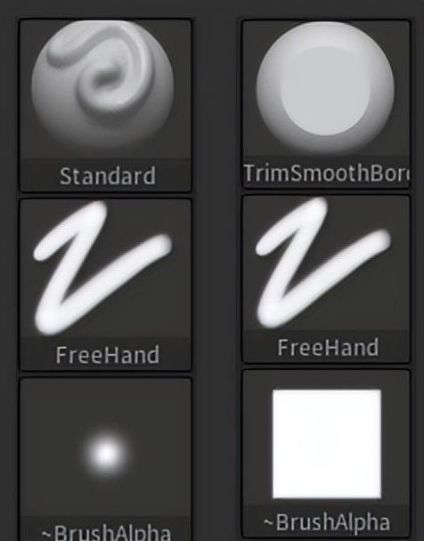 需要注意的是,TrimSmoosth这个笔刷并不被ZBrush装载在默认的Brush界面。需要我们去灯箱中检索该笔刷。它的具体路径是:灯箱---brush---trim--TrimSmoothBord