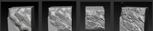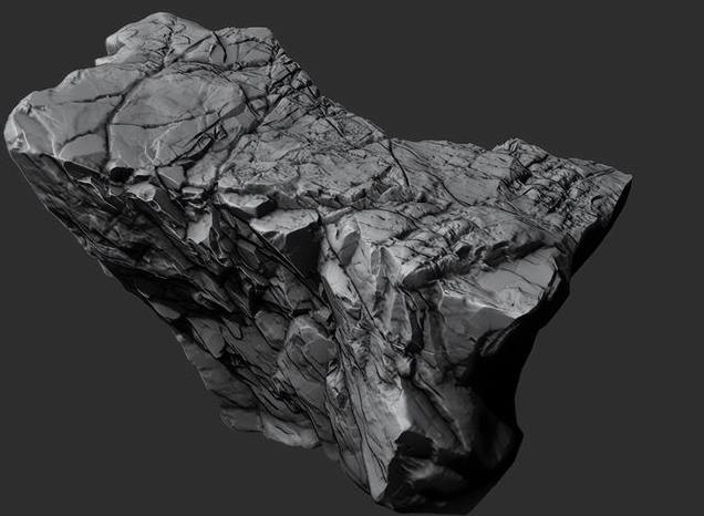 这一步就是我们针对山石的具体特征,进行更细致的高频次的刻画处理。这里我们就主要演示最常规的硬质山石的处理方式。