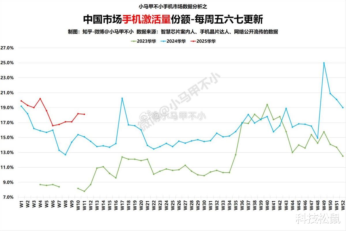 进入2025年,华为手机高中低端全面发力,增长势头依然强劲。近日有博主整理了W1-W11华为手机国内市场份额的变化情况,市场份额维持在16%-20%之间,总体的市场份额维持平稳。2025年前11周对比2024年同期,华为手机国内市场份额连续11周实现上涨,这也预示着2025年华为手机开局良好,为全年拿下国内第一打下了坚实的基础。