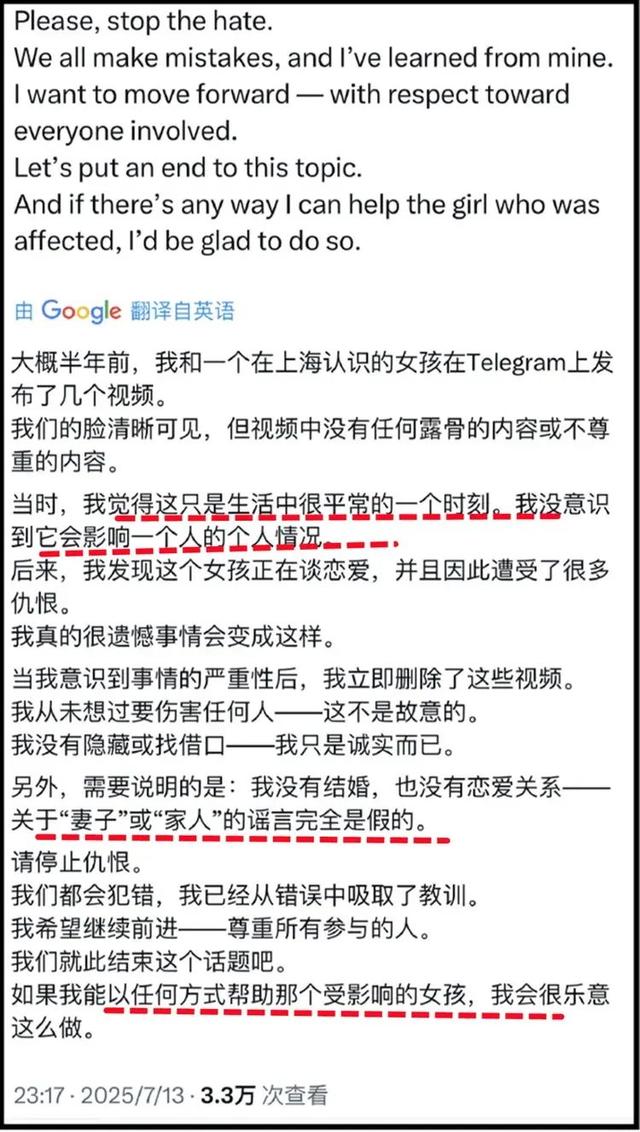 外籍男的“洗白文”更恶心。说什么“单身女性就没问题”,合着在他眼里,女生单身就能随便拍私密视频?这三观比他打游戏的操作还歪。