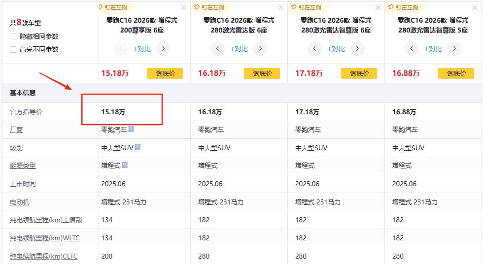 在售价方面,2026 款零跑 C16 展现出了较强的诚意。纯电版车型指导价 16.18 万元起,与老款相比,入手门槛保持不变;增程版车型指导价 15.18 万元起,相较于老款 15.58 万元起的指导价,有了明显的降低,为消费者节省了购车成本。值得注意的是,除尊享版(入门款)外,其余版本均标配激光雷达。激光雷达作为智能辅助驾驶领域的关键传感器,能够显著提升车辆的感知能力,为智能辅助驾驶功能提供更精准的数据支持。这一配置的普及,进一步提升了新车的性价比,让消费者能够以相对较低的价格享受到更完善的智能辅助驾驶体验。