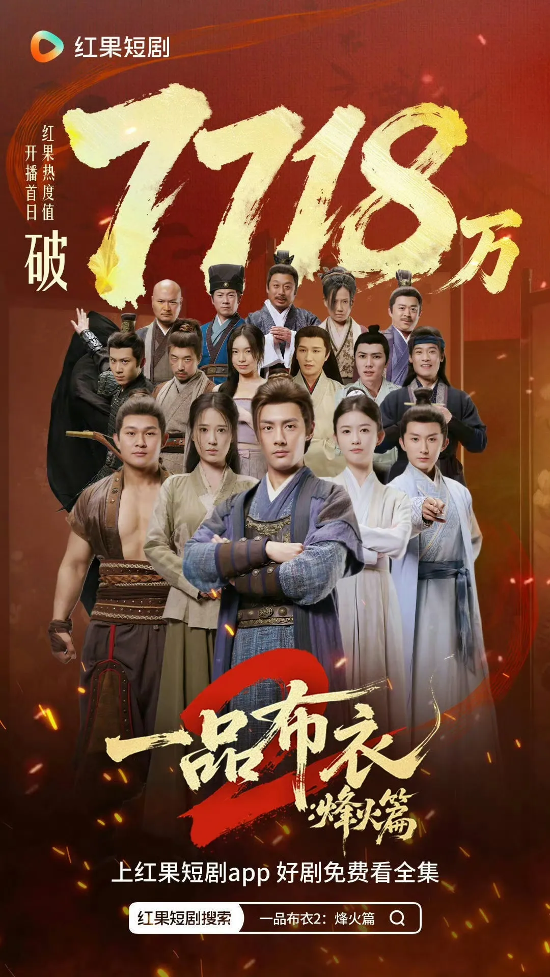 其续集《一品布衣2:烽火篇》也因此备受期待,上线前的红果预约量突破490万,1月13日上线首日热度值破7718万,目前红果免费短剧APP上的剧评已超过4000篇。