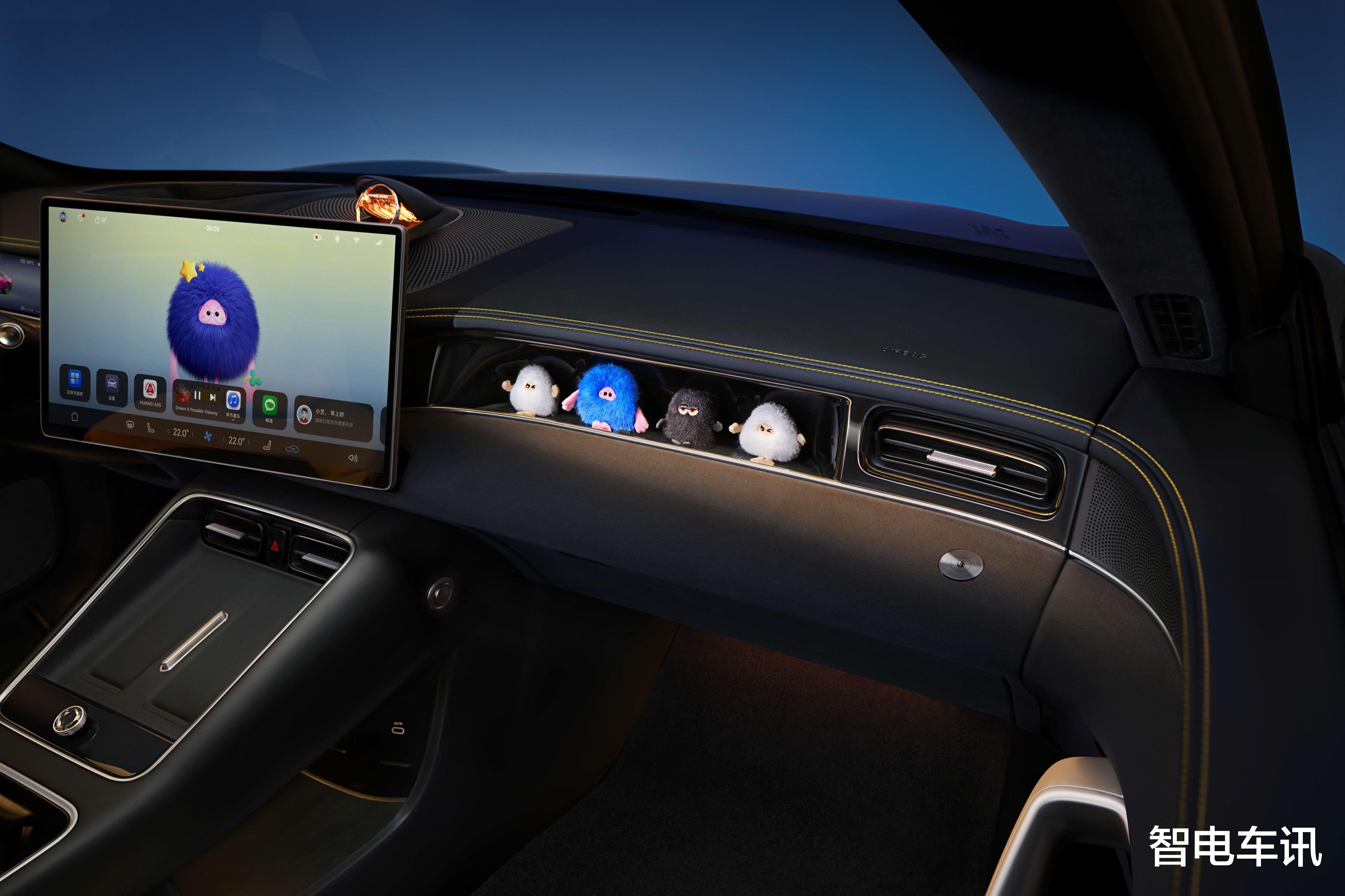 还有副驾前面的“灵感橱窗”,简直是这代年轻人的精神写照。毛绒玩偶、手办盲盒、限量公仔,终于不用藏在家里,而是可以光明正大地摆进车里。这哪里是储物格,分明是成年人的“精神快充站”。