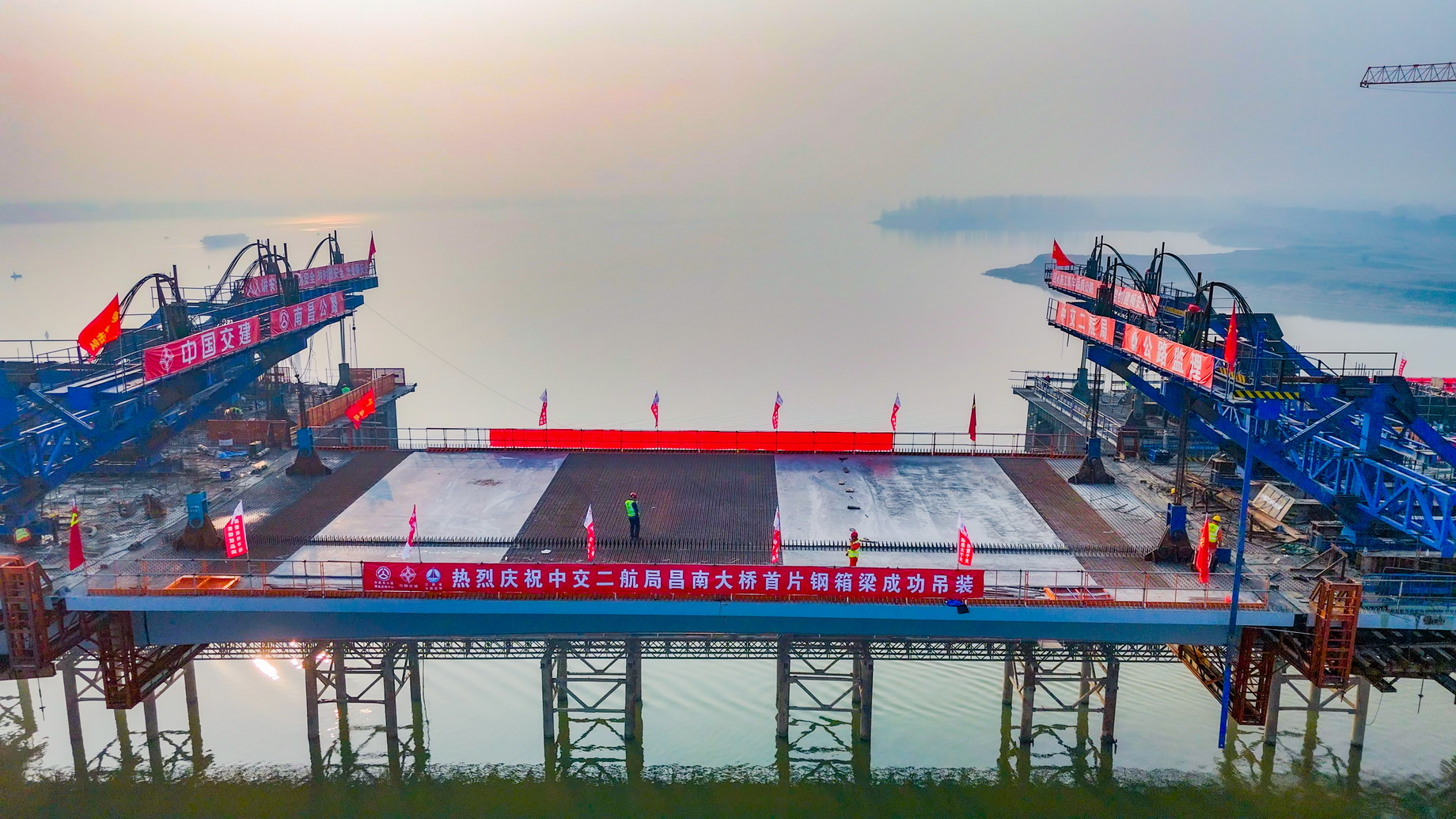 12月11日,由南昌市公路事业发展中心投资建设、中交二航局承建的新南大道(G320)A标项目昌南大桥首片钢箱梁成功吊装。