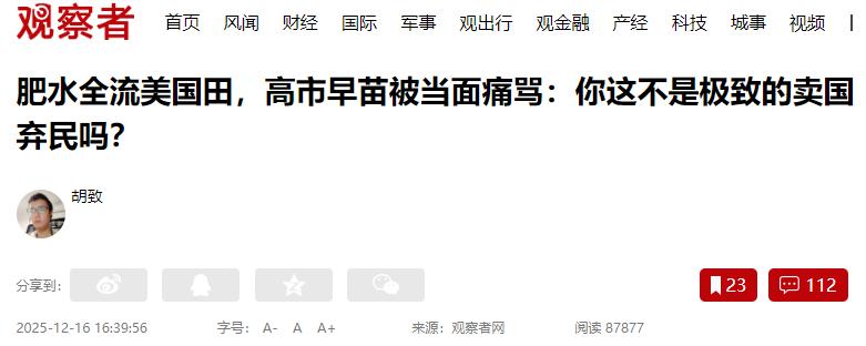 这番话在日本社会引发了强烈共鸣。要知道日本民众早就对长期的经济低迷和对美依赖不满了。高市早苗为了讨好美国,不顾国内实际情况,搞这种“赔本赚吆喝”的投资,自然会遭到反噬。