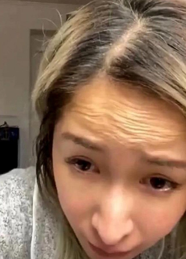 素颜下的柳岩,眼睛浮肿,眼角处有硕大的眼袋,看上去苍老了不少。