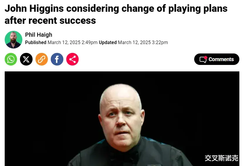 英媒《地铁报》:“最近取得成功后,希金斯考虑改变比赛计划”。