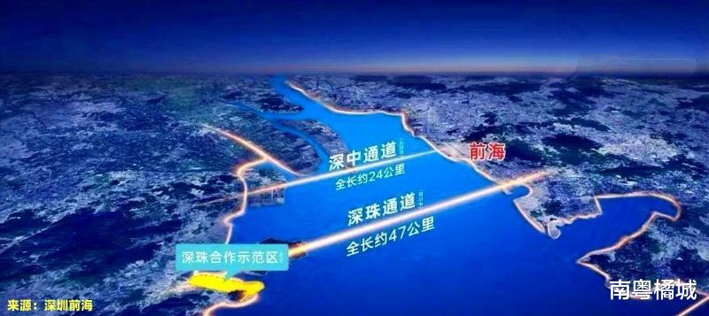 深珠通道又称伶仃洋通道,是粤港澳大湾区首条跨海公铁两用通道,地处深中通道与港珠澳大桥之间、距两者分别约12公里和20公里,战略位置得天独厚。根据早期研究方案可知,线路东起深圳前海合作区,西至珠海高新区,全长约46.5公里,拟采用“西桥东隧”方式建设,集高速公路、高铁、城际铁路于一体的公铁复合超级跨海通道。通道包含双向八车道高速公路、设计时速350公里的高铁及时速200公里的城际铁路,建成后深圳至珠海通行时间将缩短至30分钟,并接入国家高速公路网及粤港澳大湾区城际铁路网络。(注:由于项目尚在规划阶段,具体技术参数如桥隧形式、长度等尚未最终确定。)