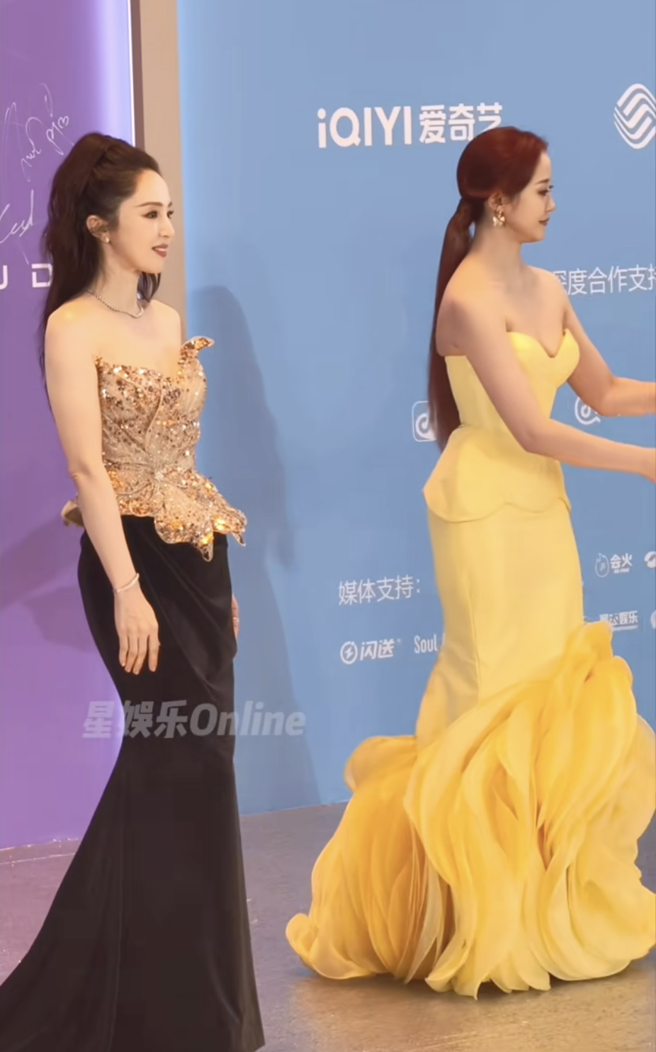 当天,大部分女艺人都是独美,董璇是母女俩一起炸场。