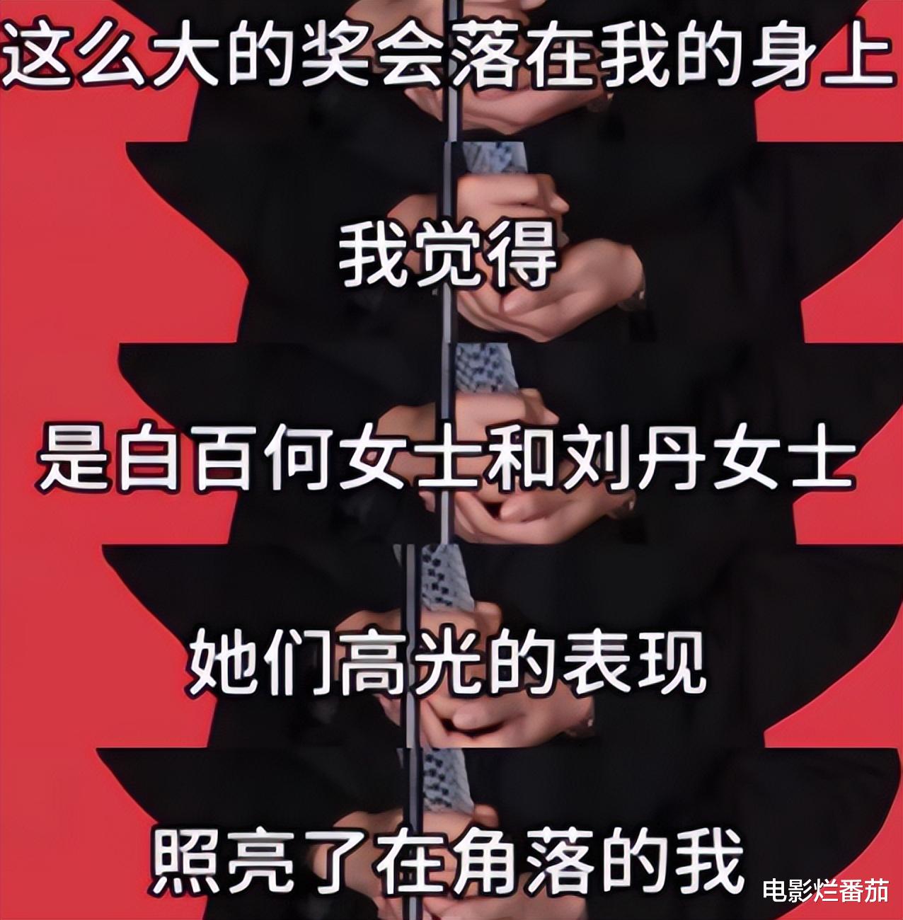 他不仅反复强调自己获奖很意外,还表示,“是白百何女士和刘丹女士,她们高光的表现照亮了在角落的我。”