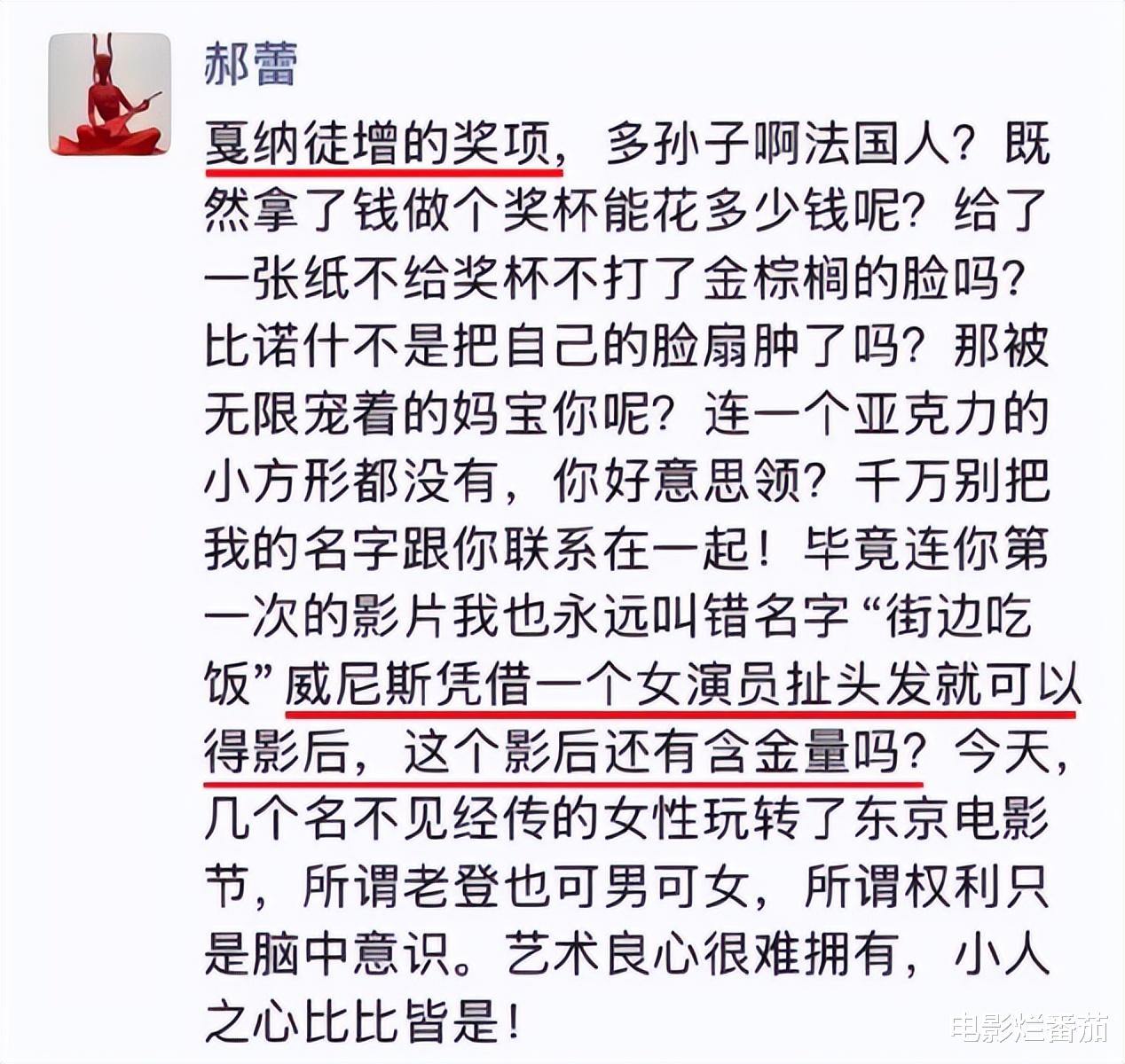 就在11月7日,有人爆出郝蕾抨击各大电影节。