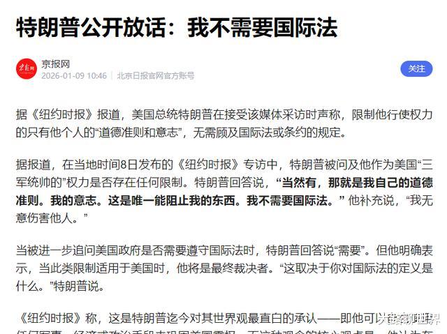 他觉得联合国没啥用,美国自己就能管好世界上的事,维和这种事靠美国就行了。有人问他要不要遵守国际上的规矩,他说那得看他自己怎么想,意思就是规矩是他定的才算数。这话一出,外面好多人都在议论。