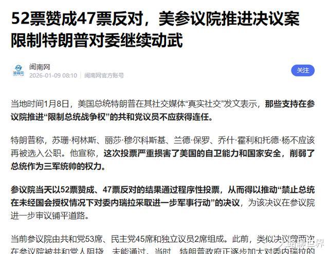 这回是关于打仗的事。好多议员怕特朗普脑子一热,就让美国跟委内瑞拉打起来,到时候国家陷进去就麻烦了。他之前的一些做法,就没有经过国会点头,很多人心里早就有意见了。