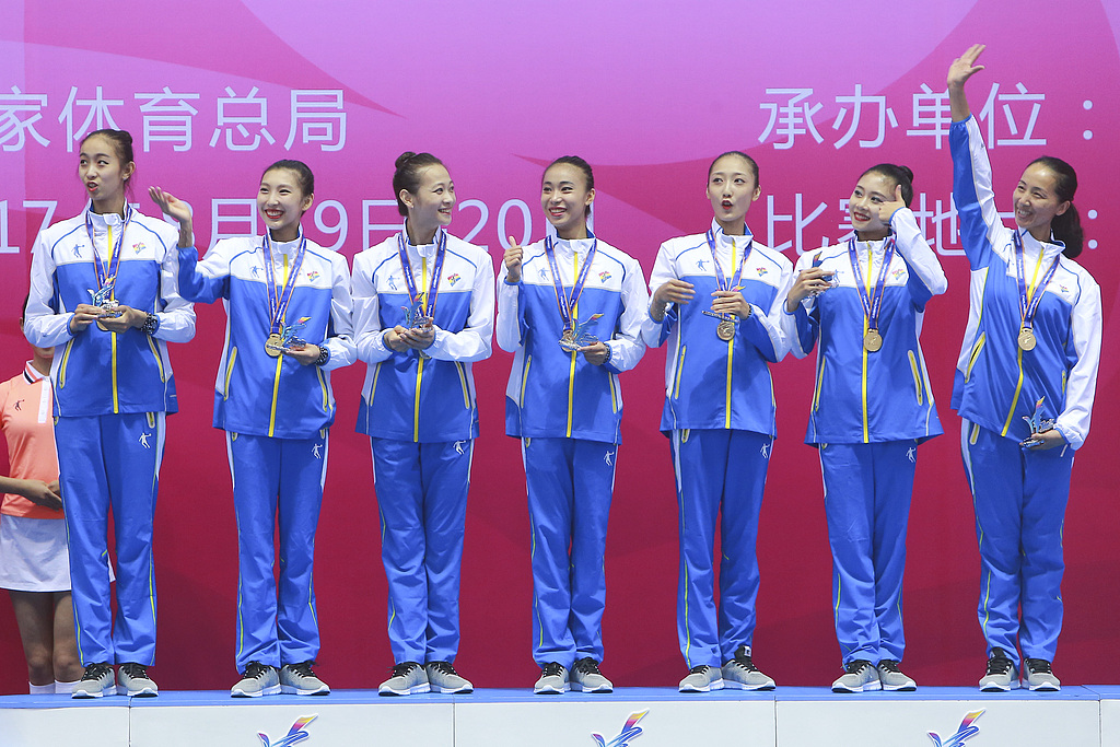 奥运艺术体操冠军们用他们的行动诠释了中华体育精神,这些精神将激励着一代又一代的人为实现梦想而努力奋斗。