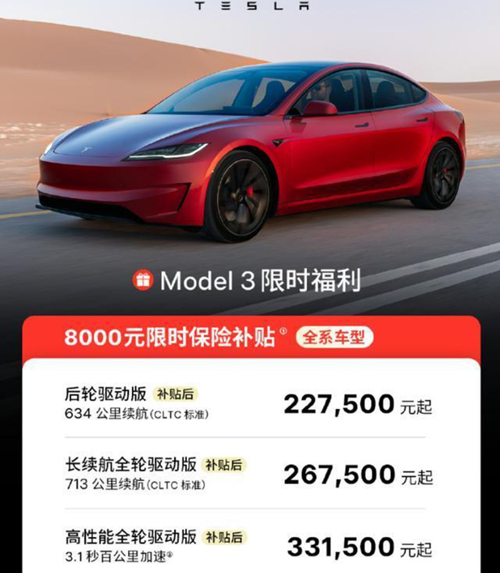 咱先说说特斯拉最近的购车政策。据特斯拉微博 4 月 22 日消息,特斯拉中国宣布了新的促销活动。6 月 30 日前,焕新 Model Y 首次全系推出 5 年 0 息,首付 7.99 万元,月供低至约 3060 元;与此同时,Model 3 全系也推出限时 8000 元保险补贴,后驱/长续航版叠加 5 年 0 息,月供低至约 2460 元。这一连串的数据和优惠政策,乍一看还挺诱人,仿佛在说:“快来买我呀!”但稍微一琢磨,却又能感觉到一丝丝的心酸。