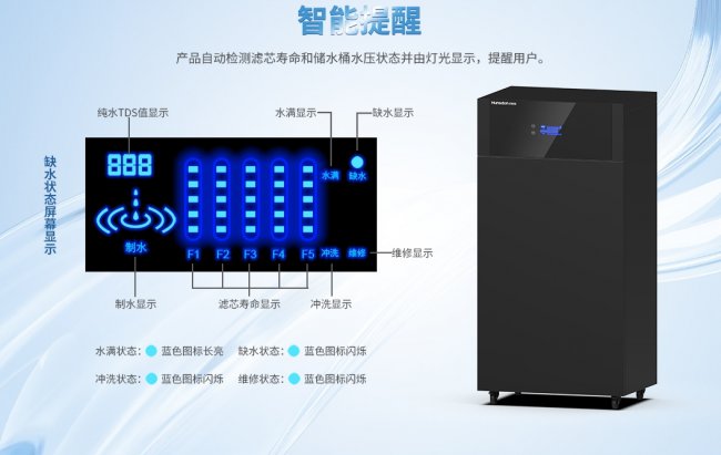 • 商用厨房场景:耐高压、防漏水的工业级设计,可承受24小时连续运转,配合智能冲洗功能自动清洁RO膜,减少人工维护成本。