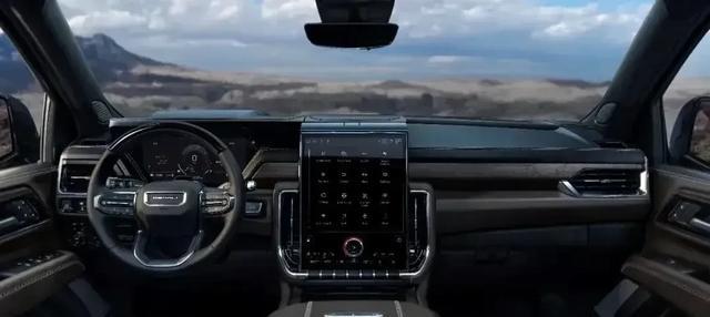 内饰部分,中控台是家族式的设计风格,整体造型很硬朗粗犷,中控面板使用了大面积的皮质缝线装饰,还搭配了木纹装饰板以及镀铬装饰。新车使用了内嵌式的仪表盘和悬浮式中控大屏,激光雕刻的“德纳利峰”等高线图 ,这些细节不仅提升了档次感,还让整车的豪华氛围更上一层楼。