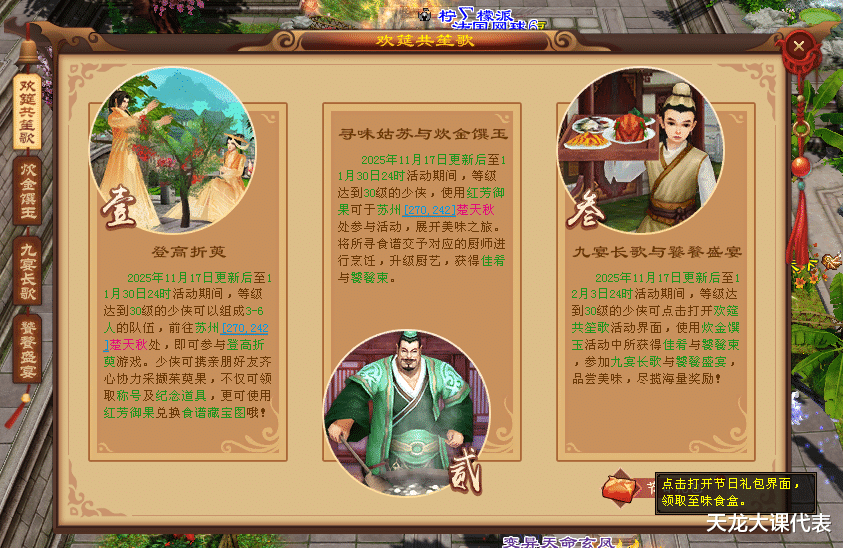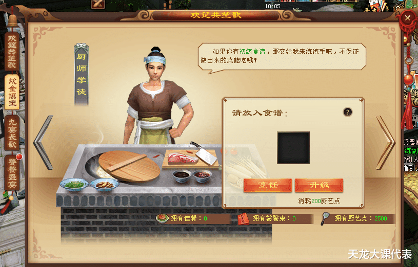 3.用活动道具换藏宝图去挖食谱,升级食谱和做菜。这里能拿的奖励主要是饕餮柬(用绝世食谱时会给),也就是最后抽大奖的券。绝世食谱则靠用高级食谱概率给。