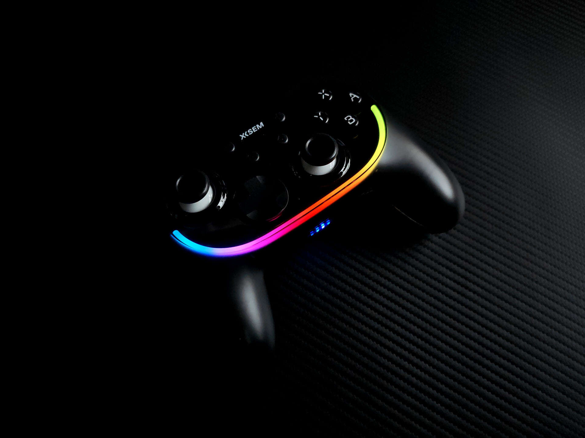 手柄到手我就迫不及待的拆包装入手了,西圣GC1设计比较独特,采用的是半透明幻雾晶透机身,通过纳米雾化工艺,内部机芯与结构若隐若现,搭配环绕的RGB灯带(支持10种灯效模式),科技感十足,有一种赛博朋克的感觉。