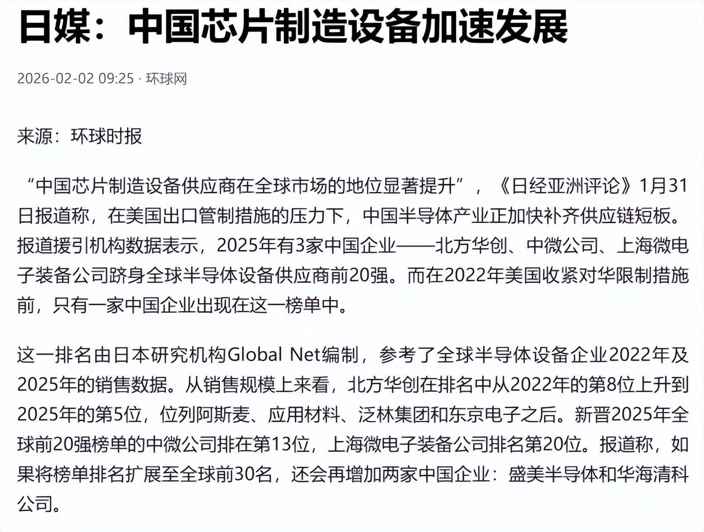 日经新闻网引援日本研究机构排名,发现2025年,中国有3家芯片制造设备厂进入前20!一时间感慨万分!