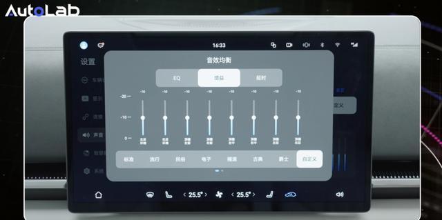 在音效自定义设置里,不光有普通的均衡器(EQ)调整,还能细致到给每个扬声器单独调音量大小和声音延迟。这种非常细致的调整功能,在同类车型里可不多见。