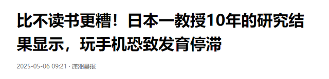 潇湘晨报2025.5.6——比不读书更糟!日本一教授10年的研究结果显示,玩手机恐致发育停滞