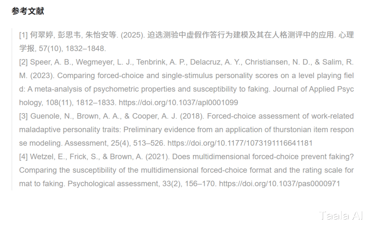 不过,迫选测验也不能完美防伪。虽然平均来看,迫选测验确实比传统的Likert量表更能抵抗作假,但它并非完全不受影响[2]。