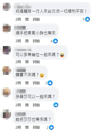 岛内网友在欢迎的同时,还不忘喊话其他大陆运动员来台交流,像乒乓球选手樊振东、许昕、王楚钦、孙颖莎,跳水运动员全红婵,游泳运动员潘展乐等都被点名。