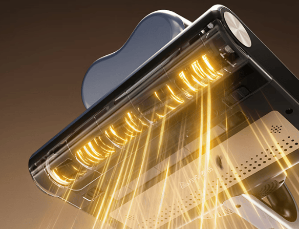 产品创新性整合UV-C深紫外消杀与65℃智能温控系统,形成立体防护网络。5颗高密度紫外线灯珠阵列可释放253.7nm黄金杀菌波段,直接破坏微生物遗传物质;65℃智能恒温热风不仅能瞬间灭杀虫卵,更能保持织物持久干爽。这种"紫外+高温"的双模协同方案,不仅实现可高达100%除螨效率,更能长效抑制螨虫再生,为家庭打造真正的无菌睡眠环境。从强力清除到持续防护,希亦以科技实力构建了完整的健康家居生态闭环。