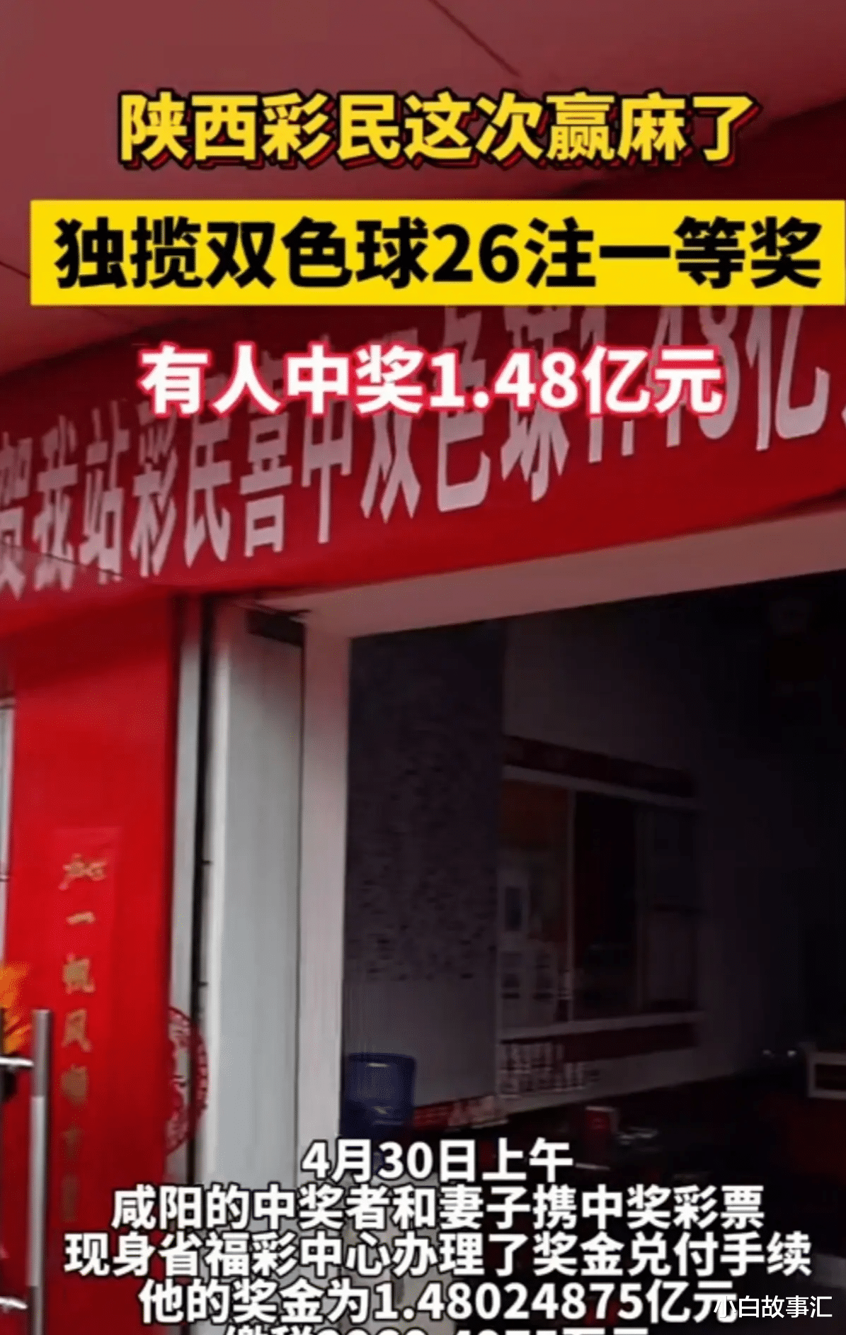 据媒体报道,中国福利彩票近期开奖,出了一等奖26注,其中陕西咸阳的某投注点出了25注,奖金为1.48亿元,为一个彩民独中。