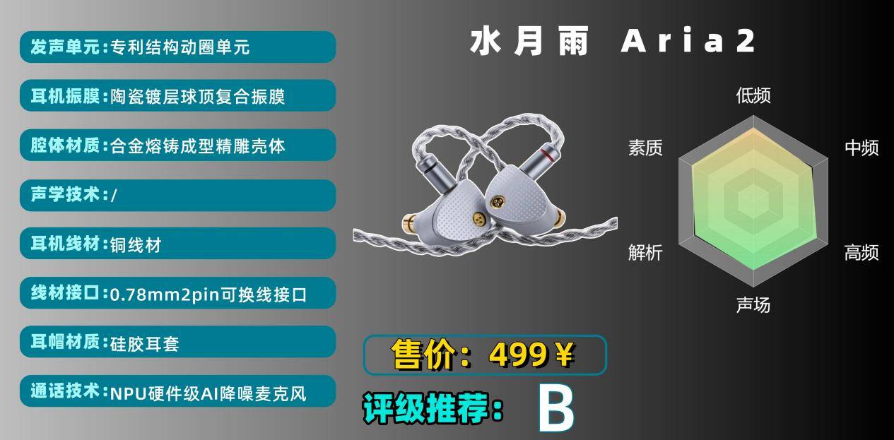 搭载定制动圈单元,搭配 TiN 陶瓷镀层球顶复合振膜与内外复合磁路技术,高频延展自然无毛刺,人声密度适中,低频弹性尚可,解析力在同价位表现亮眼。缺点是低频量感偏克制,大编制音乐的氛围感稍显不足。