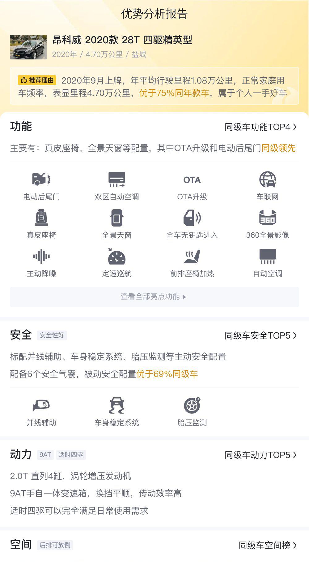 最后,我们再来看看一些数据。根据某二手车平台的数据显示,2020款昂科威28T四驱精英型的平均成交价在11万左右,与我们前面提到的价格基本吻合。同时,该车型的保值率也相对较高,这意味着即使你以后想换车,也能卖个不错的价格。