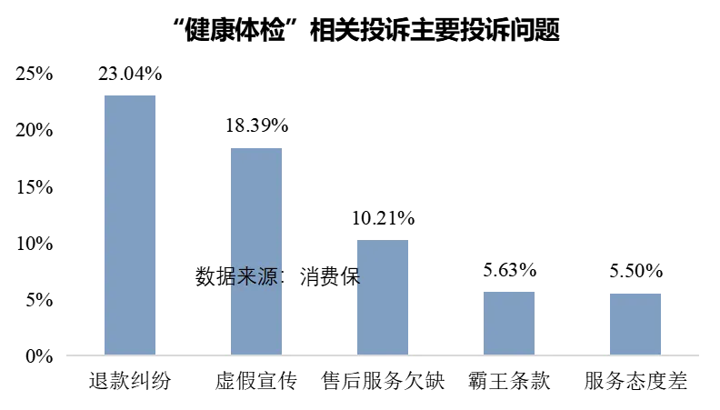 据消费保平台数据显示,“健康体检”行业的投诉问题主要集中在退款纠纷、虚假宣传及售后服务欠缺等方面。