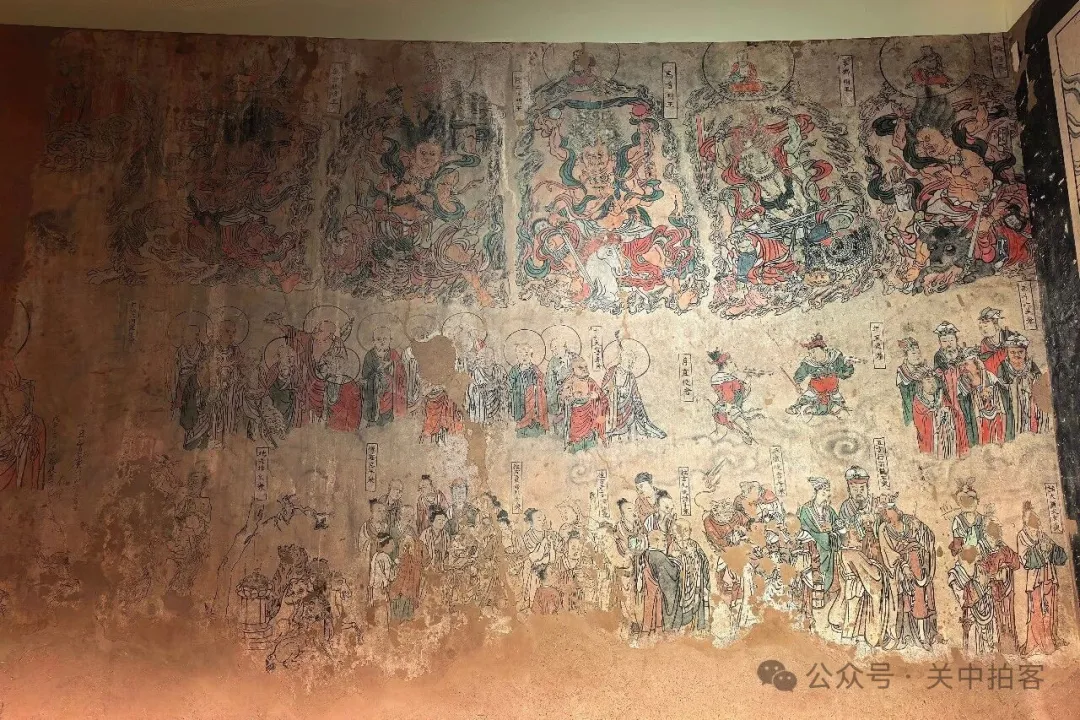 壁画内容遵循水陆法会的仪轨,分为上堂、中堂、下堂神祇体系。其中,上堂为佛和菩萨,中堂为道教和民间信仰,下堂是众生和亡灵等形象。儒、释、道三教合一,交相辉映,多元包容。