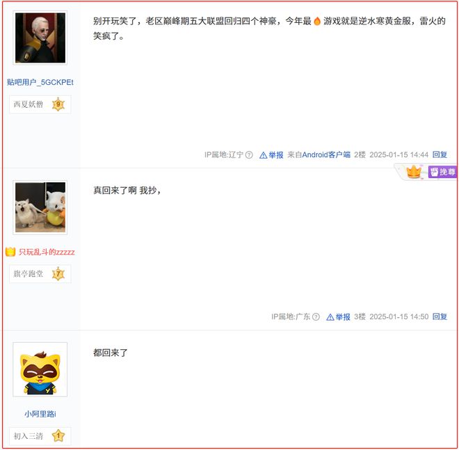 事实证明,玩家们的担心完全是多余的。黄金服开服前,官方就透露有几十位顶级神豪回归,游戏首位 “区长” 蓝杉、多年战力第一人 “公子亦白”、一人撑起一个区的 “怪嘼” 等,这些名字一出现,瞬间勾起了无数玩家的回忆。