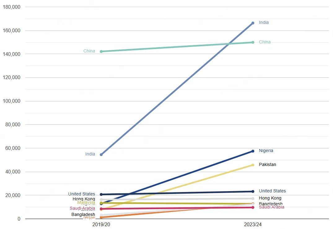英国大学中国留学生数量