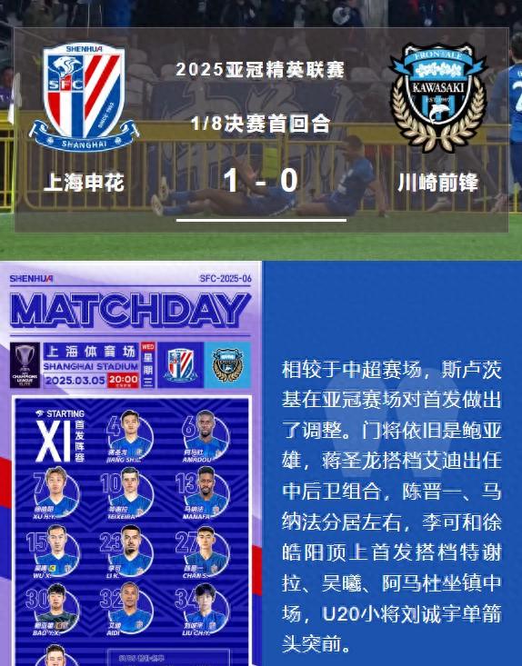 这场比赛虽然申花赢了,但是说实话,整体表现并不算特别出色。跟川崎前锋比起来,无论是技战术水平还是身体对抗,都还有不小的差距。这也反映出了中超球队在亚冠赛场上的整体实力还有待提高。其实不光是申花,近几年中超球队在亚冠赛场上的表现都不太理想。这里面有很多原因,比如说外援政策的限制,联赛水平的下降,青训体系的不完善等等。要想在亚冠赛场上有好的表现,中超球队还有很长的路要走。不过话说回来,这次申花能赢下比赛,多少也算是给中国球迷带来了一些安慰。希望这能成为一个好的开始,让更多中超球队在亚冠赛场上有好的表现。